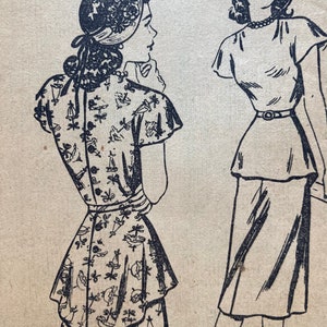 1940s Lovely Two Pc Dress Pattern Butterick 4539 Flared Skirt Peplum Top Pretty Style Details Bust 32 Vintage Sewing Pattern